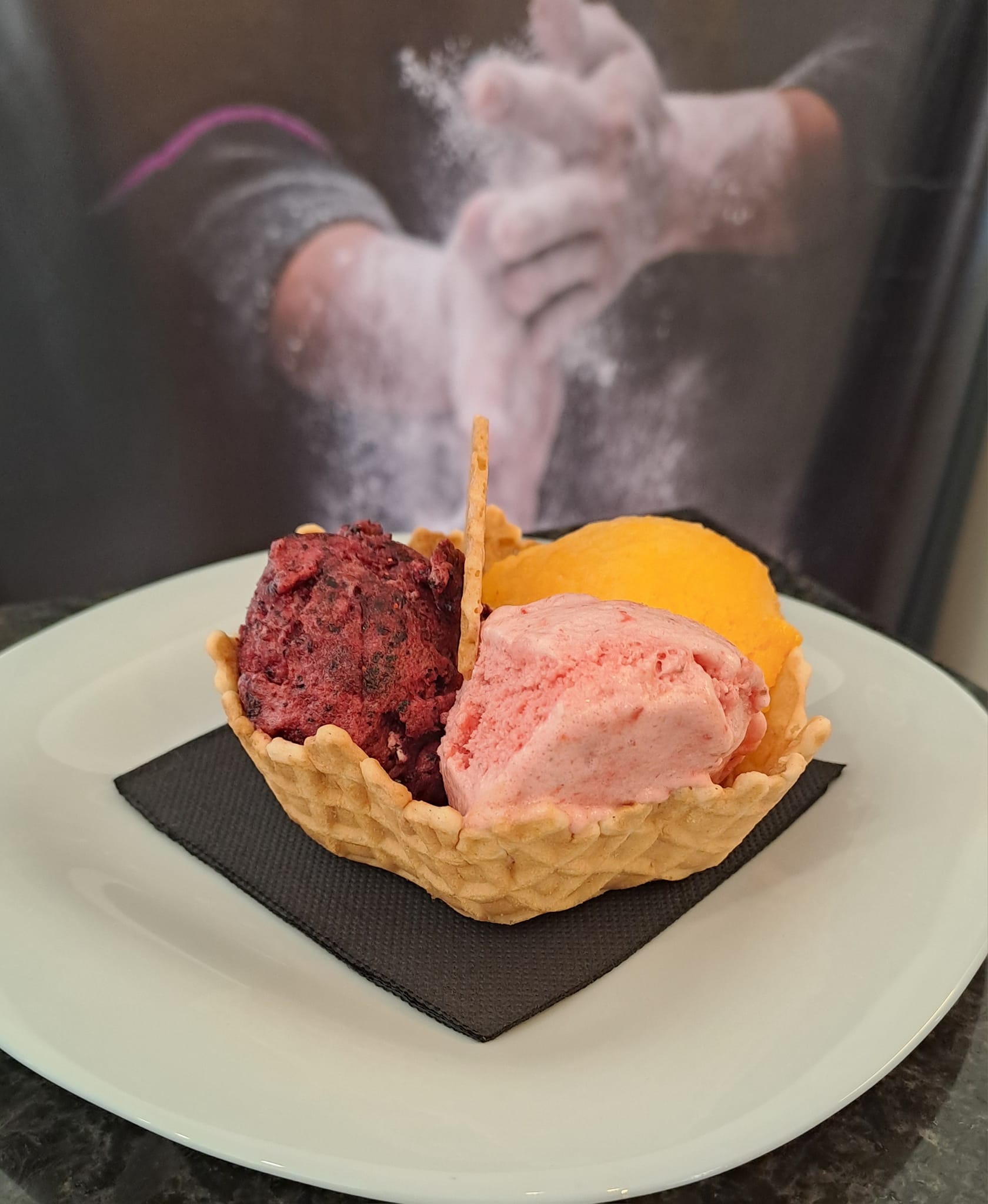 Delícias como travesseiro de maçã e noz, "Tulhipas" de maçã, sorvetes naturais de fruta, crepes, waffles, limonadas naturais, cappuccinos e chocolates quentes para momentos especiais.